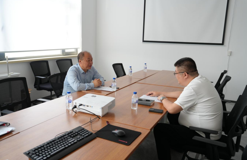 图为英国威廉希尔公司纪委书记谷学智与智慧城市公司副总经理田继卓谈话