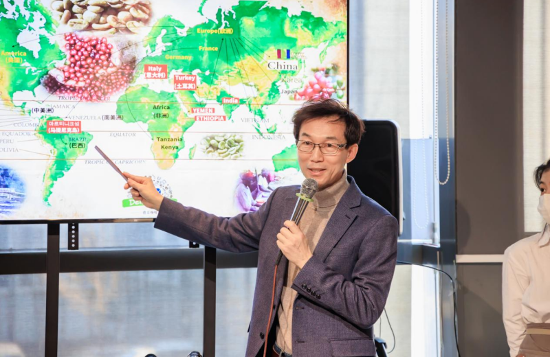 随后,活动特别邀请德音咖啡的总经理、亚洲咖啡联盟——长春支会长、2020年长春市政府颁发的“长春友谊奖”获得者——来自韩国的禹庆济先生和他的团队,为大家带来一场小型精品咖啡品鉴会,随着一杯杯醇香的手冲咖啡分发到每个人的手中,大家也通过禹庆济先生的讲解,了解到每款咖啡的特点,咖啡的起源及发展历程。