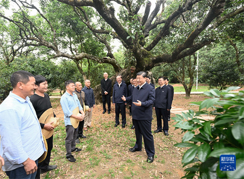 4月10日至13日,中共中央总书记、国家主席、中央军委主席习近平在广东考察。这是11日下午,习近平在茂名高州市根子镇柏桥龙眼荔枝专业合作社考察。新华社记者 李学仁 摄
